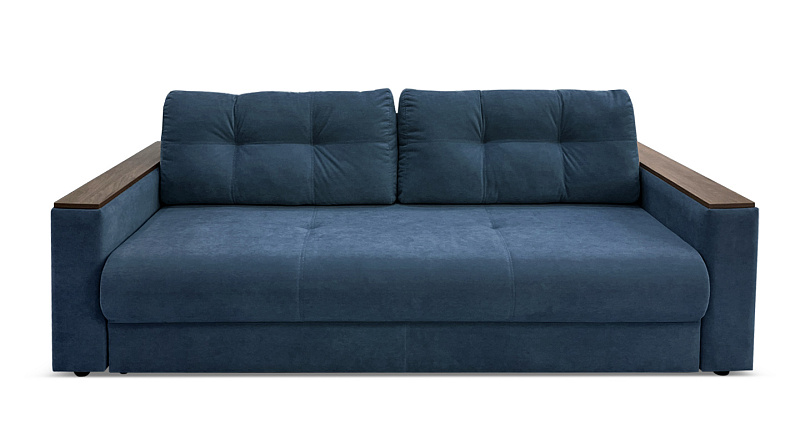 Диван "Анкона М" – классический эргономичный диван с двумя большими подушками выполняющими роль спинки. Основные особенности - деревянные вставки на боковинах. На них можно поставить кружку, крем, телефон или книгу. Они равны по функционалу небольшому журнальному столику. Благодаря кожзаму их легко чистить, поэтому не стоит бояться, если на них прольется та же кружка с чаем или молоком. "Анкона М" компактен, но в разложенном состоянии представляет собой полноценное двуспальное место. Производителем использован надежный механизм трансформации "еврокнижка", рассчитанный на ежедневную эксплуатацию. Наполнитель - блок независимых пружин. Снизу расположен ламинированный ящик для постельного белья, куда можно положить постельные принадлежности или другие вещи.  Диван можно использовать как запасное или постоянное место для сна.