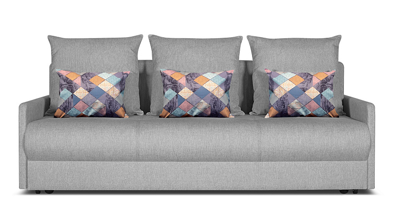 В комплекте шесть подушек - три большие, которые служат спинкой и три цветные декоративные. Чехлы подушек снимаются, их можно стирать и заменять на новые, тем самым обновляя и изменяя внешний вид дивана в целом.