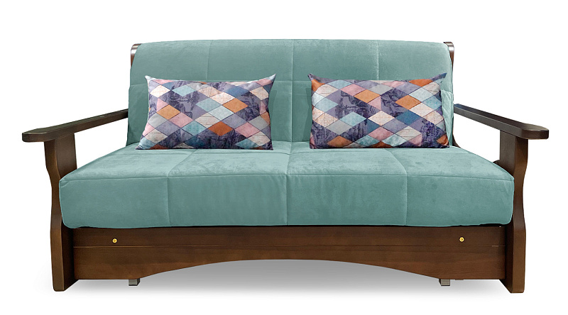 Прямой диван “аккордеон” с деревянным подлокотником из бука выглядит интересно и элегантно. Бук - это прежде всего красивая порода дерева с неповторимым узором на срезе и благородным окрасом. По внешнему виду мебель из бука не уступает более дорогостоящей продукции из массива дуба.