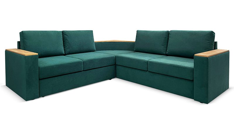 Деревянные накладки на подлокотниках заменят собой кофейный столик. На них можно поставить кружку, положить гаджеты, книги, крема. Сама вставка выполнена из ДСП, а её кромка - из ПВХ. Это препятствует расслоению и порче материала при его активном использовании и влажной уборке. Всё нужное с такими подлокотниками, всегда под рукой. Лишний раз вставать и идти за этими вещами не надо. Можно расслабиться.