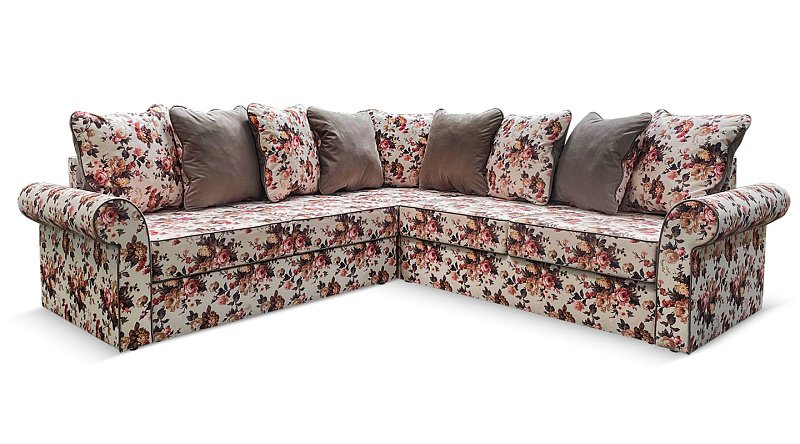Диван в стиле прованс «Халланд» – отличается большими размерами, но при этом не выглядит массивно. Наоборот – нежный принт в виде цветов на пастельном фоне делает мебель воздушной и невесомой. Округлые подлокотники придают дивану особый ретро-шарм, а многочисленные контрастные подушки только дополняют общую картину.